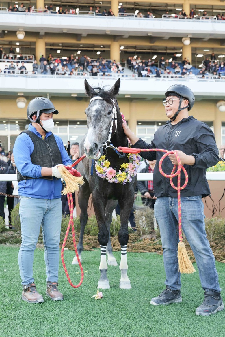 2위는 경주 종반 뛰어난 탄력을 보여준 ‘원더풀슬루’가, 3위는 3코너부터 선두권에 진입하여 끝까지 버틴 ‘옐로우캣’이 각각 차지했다.