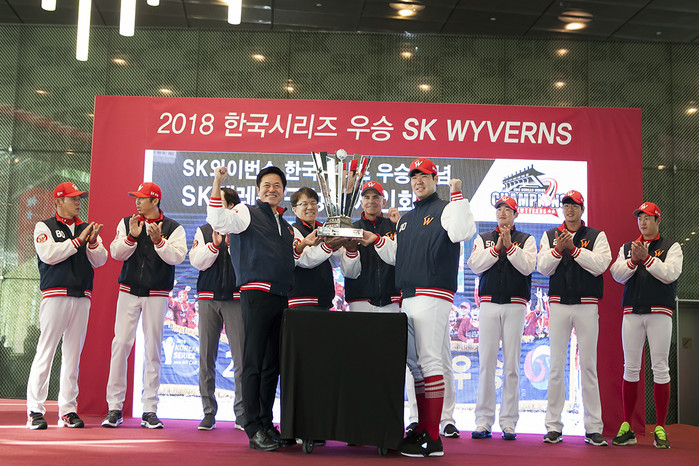 이날 행사장에는 박정호 CEO와 류준열 SK와이번스 사장이 참석했으며, SK와이번스 선수단에서는 힐만 감독과 박경완 코치, 손혁 코치 등 코칭 스탭과 이재원(주장), 김광현, 한동민(MVP) 박종훈, 노수광 선수 등이 참석해 한국시리즈 승리의 기쁨을 함께 나눴다.