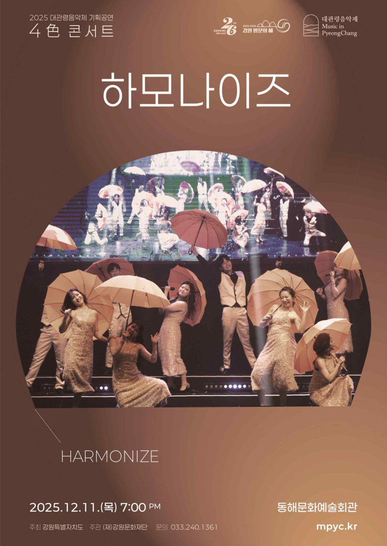 [강원도 세계타임즈=김민석 기자] 강원문화재단(대표이사 신현상)은 2025년 대관령음악제 기획공연 <4色 콘서트>의 마지막 공연을 11일(목) 오후 7시 동해문화예술회관에서 개최한다.