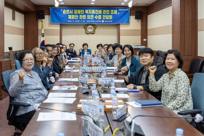 [순천시 세계타임즈=우덕현 기자] 순천시의회 행정자치위원회(위원장 장경순)는 지난 18일 순천시의회 소회의실에서 「순천시 장애인 복지증진에 관한 조례」 제정을 위한 간담회를 열었다.