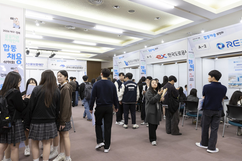 - 도로공사, 한수원 등 이전 공공기관 16개, 지역 공공기관 9개, 민간기업 1개 - [세계타임즈=경북 한윤석 기자] 경북도는 대구시와 공동으로 3월 31일 오전 10시 경북대학교 글로벌플라자에서 대구‧경북 지역 공공기관과 기업들의 채용 정보를 한눈에 볼 수 있는‘2026년 대구‧경북 지역인재 합동채용설명회’를 개최했다.