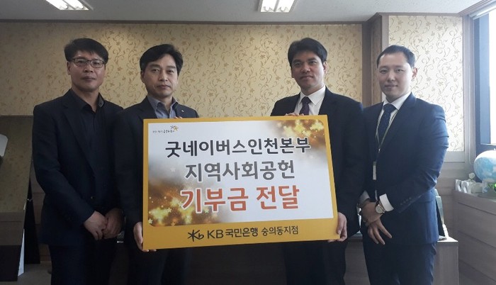 김기영 굿네이버스 인천본부장은 “지역사회 사회공헌 활동에 앞장서고 있는 KB국민은행 직원들에게 감사드리며 많은 아이들이 행복한 세상에서 성장할 수 있도록 노력하겠다.”고 이야기했다.