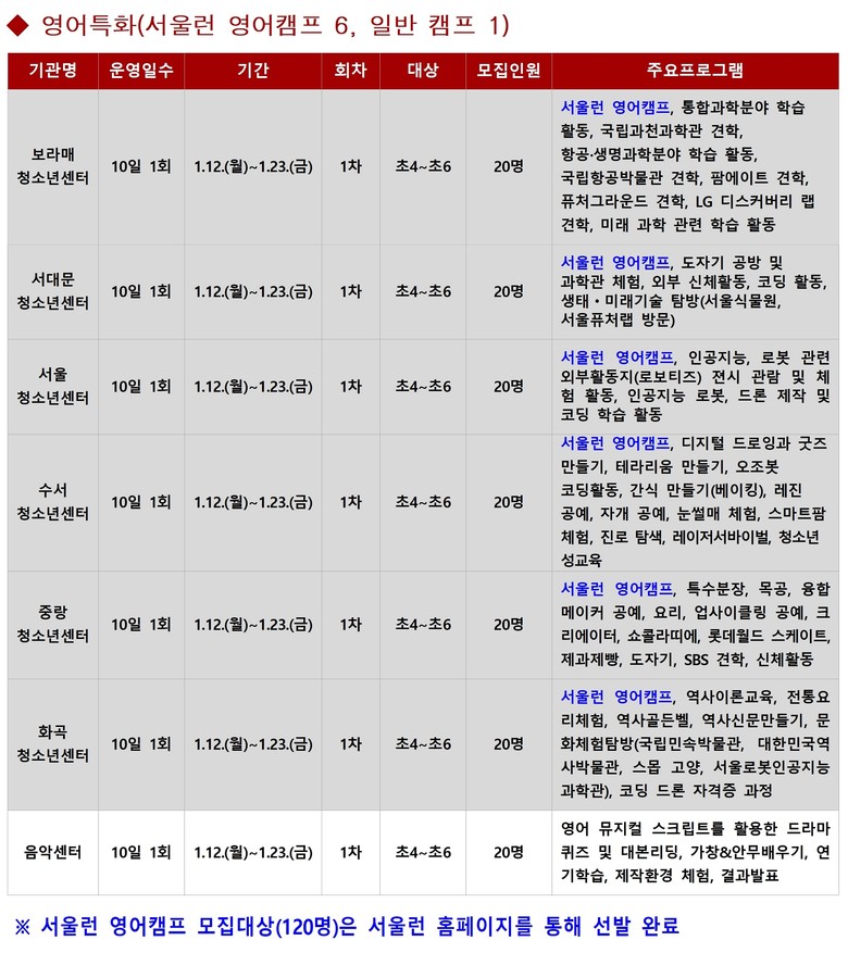 서울런 영어캠프는 12.3.~12.4. 별도 절차를 통해 모집 완료되었다.