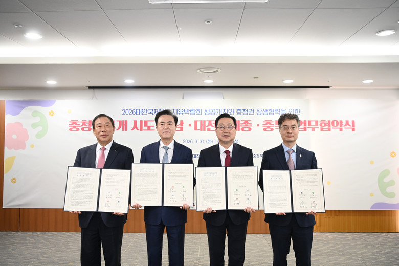 협약식에서 김태흠 지사는 “4개 시도가 함께 손잡고 한 목소리를 낸다는 것 자체가 박람회에 큰 힘이 되고, 충청의 저력을 보여주는 일이라고 생각한다”며 “그런 측면에서 이번 박람회는 충남을 넘어 충청권 전체의 행사가 될 것”이라고 말했다.