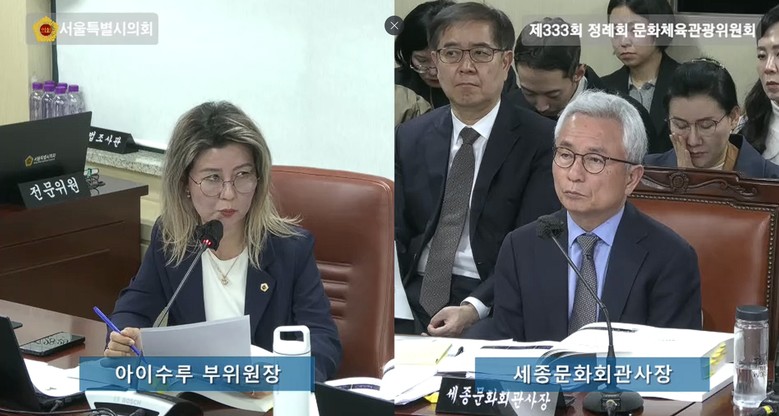 아이수루 의원은 “세종문화회관에서 추진하는 ’공연사업‘을 통한 예술인 교류사업으로 국내 지역 문화예술기관 간 협업 및 해외공연 유통 전략 가운데 글로벌 제작극장으로의 도약을 위한 세종문화회관의 노력은 뜻 깊다”면서 질의를 포문을 밝혔다