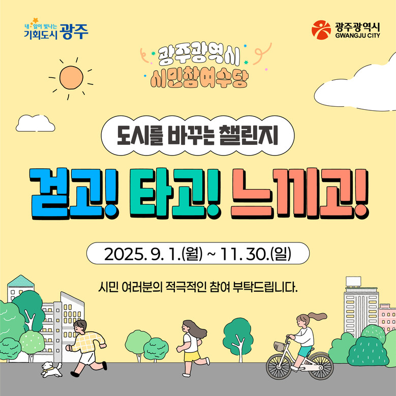 광주광역시(시장 강기정)는 시민이 일상 속에서 자발적으로 참여하는 공익활동을 장려하고, 건강한 도시 문화를 확산하기 위해 ‘2025년 시민참여수당 시범사업’을 오는 9월 1일부터 11월 30일까지 3개월간 운영한다.