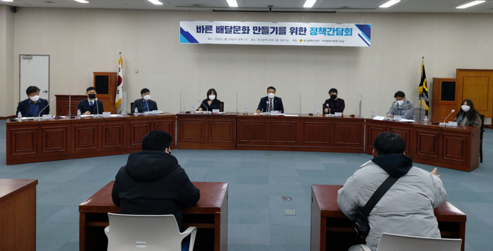 [부산=세계타임즈 이용우 기자] 부산광역시의회 기획재경위원회 김문기 의원(더불어민주당, 동래구3)은 23일 배달노동자들과 부산시 관련부서, 부산지방경찰청 등과 함께 바른 배달 문화 만들기 위한 정책 간담회를 개최하였다.