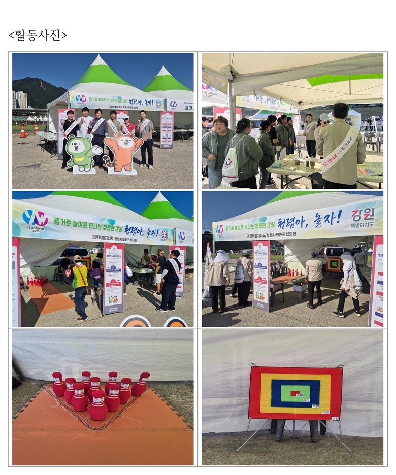 - 청렴 볼링, 청렴 약속 공던지기 등 놀이형 콘텐츠로 청렴 가치 확산 [강원도 세계타임즈=김민석 기자] 강원특별자치도 청렴사회민관협의회(공공부문 의장 김진태)는 9월 26일(금) 영월 동강둔치에서 열린 제33회 강원도민생활체육대회와 연계해 도민 참여형 청렴 홍보부스 「청렴아, 놀자!」를 성황리에 운영했다.