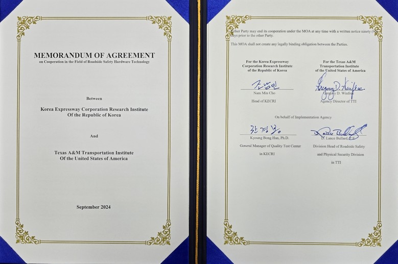 공사는 이번 미국 인증 취득을 통해 공인 시험기관으로서 세계적으로 기술력을 인정받게 됐으며, 업무협약을 통해 미국의 도로안전시설 분야 최고 연구기관과 지속적인 기술교류 협력의 발판을 마련했다.