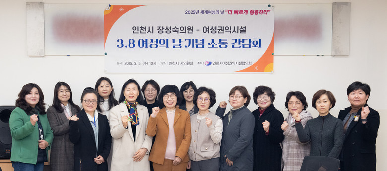 [인천 세계타임즈=심하린 기자] 인천광역시의회 문화복지위원회 소속 장성숙 의원(민.비례)은 최근 5일 ‘3.8 세계여성의날’을 맞아 인천시여성권익시설협의회 관계자 및 인천광역시 여성정책과와 함께 인천의 올바른 성평등 정책 방향에 대하여 소통하는 간담회를 개최했다고 7일 밝혔다.