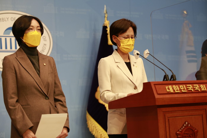 [세계타임즈 이진화 기자]정의당 예결위원인 강은미 의원이 4일 오후 서울 영등포구 여의도 국회 소통관에서 기자회견을 열고 정의당 2022년 예산안 평가 및 요구안을 발표하고 있다.