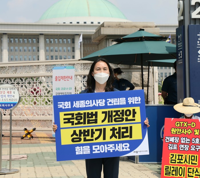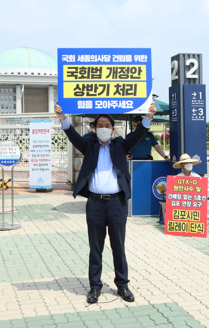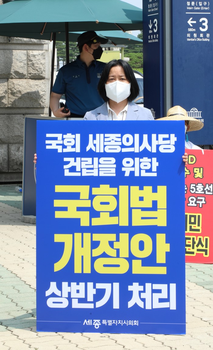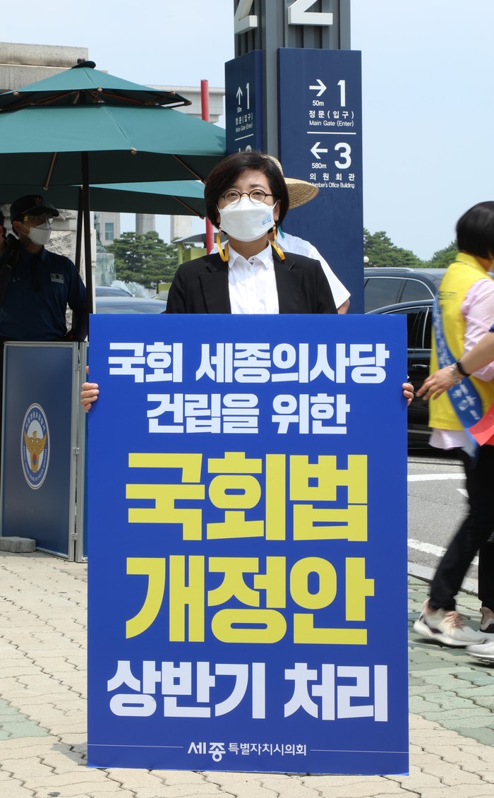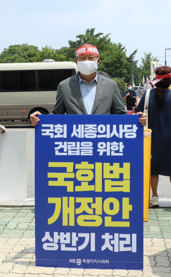 세종특별자치시의회 ‘행정수도완성 특별위원회(위원장 유철규, 이하 행수특위)’는 24일 여의도 국회의사당 앞에서 국회법 개정을 촉구하기 위한 1인 릴레이 시위를 했다.