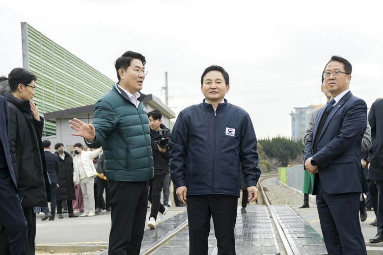 특히 원희룡 장관은 이날 노관규 순천시장과 함께 경전선이 도심을 통과하는 남정 건널목 현장을 찾은 자리에서 "윤석열 대통령께서 순천시민의 의견을 잘 듣고 오라고 하셨다"고 밝혀 이를 지켜보는 시민들로부터 큰 환영을 받았다.(사진 순천시 제공)