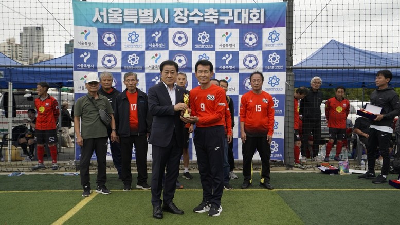 [서울 세계타임즈=이장성 기자] 서울특별시의회 도시안전건설위원회 부위원장으로 의정활동하고 있는 김용호 시의원(국민의힘, 용산1)은 지난 10월 11일과 12일, 성동구 살곶이체육공원과 응봉축구장, 중랑물재생센터 축구장에서 열린 ‘서울시 7080 장수축구대회’에 참석하여 개회식에서는 축하 인사를 전하고, 폐막식에서는 70대B조 우승팀에게 직접 트로피와 우승컵을 수여했다.