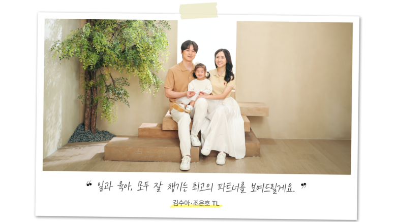 윤다솜·함경철 TL “저희 역시 업무적으로 밀접한 관계를 맺고 있기 때문에 각자의 상황을 이해하고 배려할 수 있었어요. 무엇보다 공동 육아를 하는 데 있어 서로 늘 가까이 있다는 점이 큰 도움이 되었죠.”