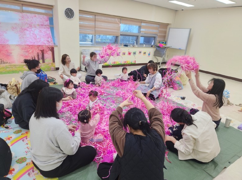 | ▲ 순천시 육아종합지원센터에서 오감 퍼포먼스 활동을 통해 양육부담을 해소하고 있다 |