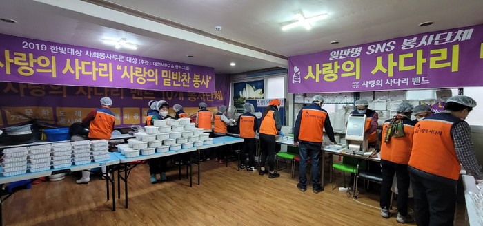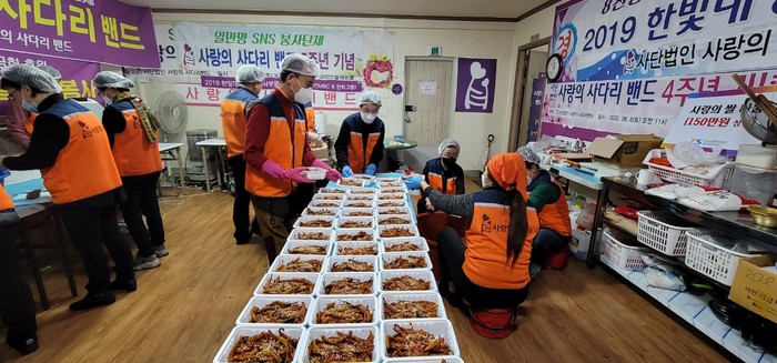 [대전=세계타임즈 이채봉 기자] 대전광역시 SNS 일만명 봉사단체 사랑의 사다리 밴드(리더 이정제)는 10일 오전9시~오후1시에 대덕구 중리동에 위치한 사랑의 사다리 밴드 사무실에서 밑반찬을 만들어서 유성구 소외계층 50가정에 전달을 하였다.