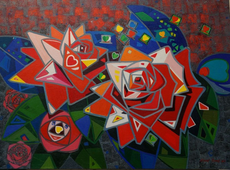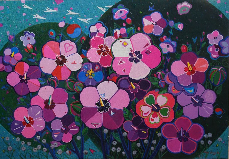 그럼에도 불구하고, 꽃이라는 단순 소재를 극복하기 위해 모험적인 새로운 표현기법을 구사했다. 그것은 세종대학 수업기의 영향으로 대한민국의 정서적인 풍경화를 표출하면서 세잔을 좋아했던 과정을 초탈하고, 어느 날 피카소로부터 받은 인스피레이션은 기하학적 요소에 집착하게 했고, 사랑의 화신 동백꽃에 기하학적 요소를 접목하여 사실적인 정물이 아니라 선묘에 의한 형상표현에 이르게 된 것이다. 특히 동백꽃 배면에 추상적인 삶의 영역을 표출한 것이 더욱 빛나는 관건(關鍵)으로 부각되고 있다. 추상적인 표상이지만 동백꽃의 단순한 이미지를 돋보이게 하는 연조(軟調, low contrast), 중간조(中間調, normal contrast), 경조(硬調, high contrast)가 신묘하게 복합적인 조화를 이루고 있어서 단순성을 정치(精緻)한 회화로 완성시키고 있는 것이다.