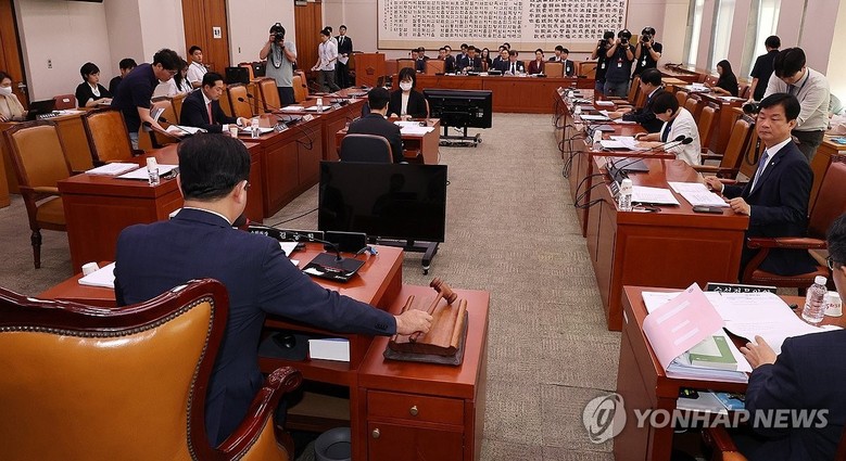 9일 오전 열린 국회 법제사법위원회의 법안심사제1소위원회에서 더불어민주당 소속 김승원 소위원장이 의사봉을 두드리고 있다. 2024.9.9