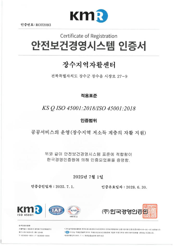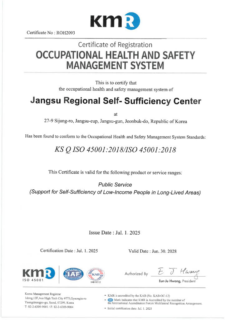 김구중 센터장은 “이번 인증은 단순한 절차를 넘어서, 참여 주민이 안심하고 일할 수 있는 기반을 마련했다는 점에서 의미가 크다”며 “앞으로도 사람 중심의 안전한 자활환경을 만들어가겠다”고 밝혔다.
