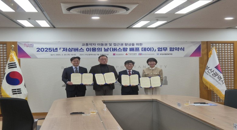 시는 지난 3월 20일 부산사회복지공동모금회, 부산광역시버스운송사업조합, 부산뇌병변복지관과 「2025년 저상버스 이용의 날(버스랑 배프 데이)」 운영사업 공동협력 협약을 체결하고, 시민추진단을 통해 ‘저상버스 탑승 체험 및 실태조사’를 하고 있다.
