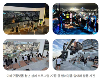 ‘이바구플랫폼’(동구)은 부산역 인근 산복도로의 빈집과 지형을 활용해 조성한 도시재생형 청년 공간으로, 입주 청년들과 공간을 관리하는 청년 단체가 함께 프로그램을 기획·운영하고 있다. 참여 청년들의 의견도 적극적으로 반영하여 프로그램을 발전시키는 등 다양한 프로그램을 진행했다. 또한, 지역 대학 등과 협업하여 지역문제 해결형 프로젝트를 지속해서 추진하는 등 청년들의 경험을 공유하는 공간으로 긍정적인 평가를 받았다.