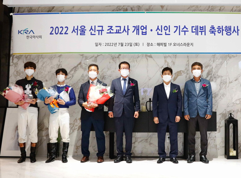 축하 행사에는 지난 7월 1일자로 신규 개업한 21조 문병기 조교사와 신인으로 데뷔한 오수철·이상규 기수가 참석했으며, 이들의 힘찬 첫 시작을 응원하기 위해 한국마사회 문윤영 경마본부장과 서울조교사협회 안병기 부회장, 기수협회 김현수 사무국장 등이 자리를 빛냈다.