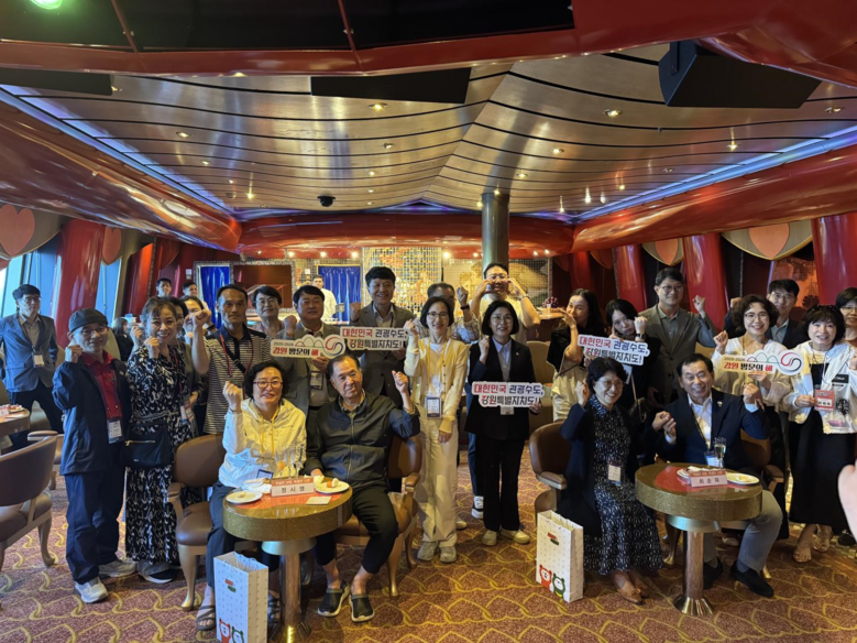 [강원도 세계타임즈=김민석 기자] 강원특별자치도(도지사 김진태)는 9월 11일 크루즈선에서 도민 체험단과 함께하는 「특별한 여행, 특별한 사연들」 차담회를 열었다. 이번 행사는 생애 처음 크루즈 여행에 나선 도민 20여 명이 시찰단 대표와 함께 자신의 삶의 이야기를 나누며 특별한 의미를 되새기는 자리였다.