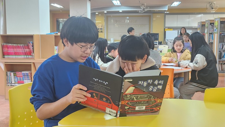 ◦ 학교 내 각 특별실에서는 6학년 학생들이 1학년 학생들에게 설명과 체험의 기회를 주었다.