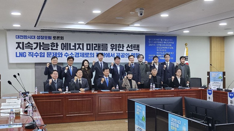 [세계타임즈 = 심귀영 기자] 대전환시대 성장포럼(대표의원 박찬대, 연구책임의원 박희승, 정진욱)은 11월 29일 오전 10시 국회의원회관 제8간담회의실에서 LNG 직수입 제도에 따른 문제점 해결방안과 수소 경제로의 전환을 위한 공공의 역할을 중심으로 열띤 토론이 진행됐다고 29일 밝혔다.