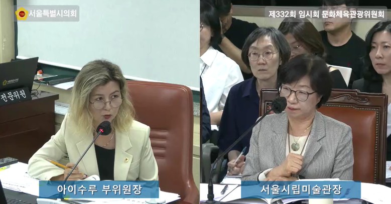 이에 아이수루 부위원장은 “안전이 제일 중요한 상황이지만, 기존 계획은 11월 개관이다 보니, 행사는 개관 날짜대로 했으면 한다”면서, 총 3개로 계획한 전시사업(▲SeMA 퍼포먼스 ‘호흡’(’25.11.5.-12.7.), ▲건립기록전 ‘기억 궁전’(’25.11.5.-‘26.3.29.), ▲뉴미디어 소장품전 ‘서서울의 투명한 사람(’25.12.23.-‘26.3.29.)(기계)’) 중, 1개만 우선 전시(SeMA 퍼포먼스 ‘호흡’(’25.11.5.-12.7.)) 를 추진하는데 있어, “전시 내용이 퍼포먼스에 해당되는 부분이라도 최대한 계획대로 연기되지 않도록 추진했으면 한다“고 제안했다.