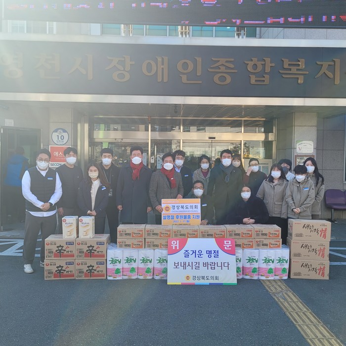 [경북=세계타임즈 한성국 기자] 경상북도의회 박영환.이춘우.윤승오 도의원은 2022년 설 명절을 앞두고 1월 17일(월) 영천에 소재한 마야정신요양원, 영천시장애인종합복지관, 영천시종합사회복지관을 위문 방문했다.