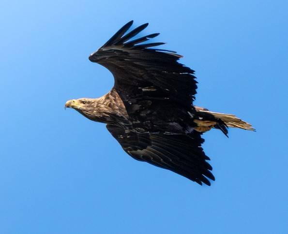 관찰된 검독수리는 날개깃 기부에 흰색 반점이 있고 꼬리가 흰색으로 확인돼 어린 새로 파악됐다.