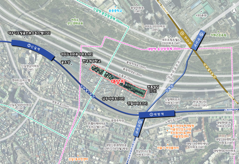 이와 함께, 여의대방로61길 및 노들로변 보행공간 조성, 대상지 동측(대방역 인근) 및 서측(한국제과학교 앞) 근린생활시설 배치 등을 통해 대상지 일대 보행체계를 개선하고, 가로를 활성화하여 역세권 중심의 활력 있는 공간으로 재탄생할 예정이다.