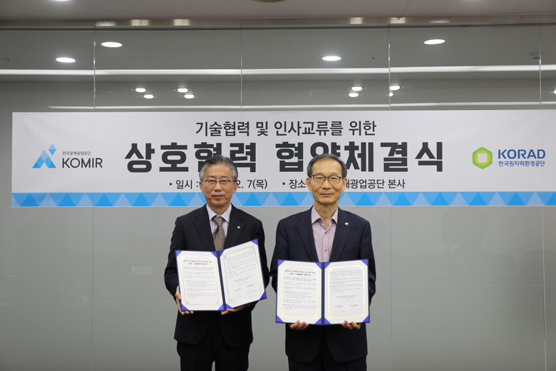 [세계타임즈 = 이영진 기자] 한국광해광업공단(사장 황규연, 이하 KOMIR)은 7일 한국원자력환경공단과 방폐물 처분시설과 폐광산 부지감시 및 평가를 위한 기술협약을 체결했다고 밝혔다.