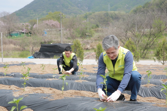 [세계타임즈 이광원 기자] NH농협생명 홍재은 대표이사와 임직원 40여명이 4월 24일(수) 경기 여주시 강천면 도전4리 마을을 찾아 농촌일손돕기에 나섰다. 마을 주민과 고추와 가지심기 등을 함께하며 영농철 부족한 일손을 보탰고, 마을 고충 해결을 위해 다양한 의견을 공유하며 농촌과 유대감을 키웠다.