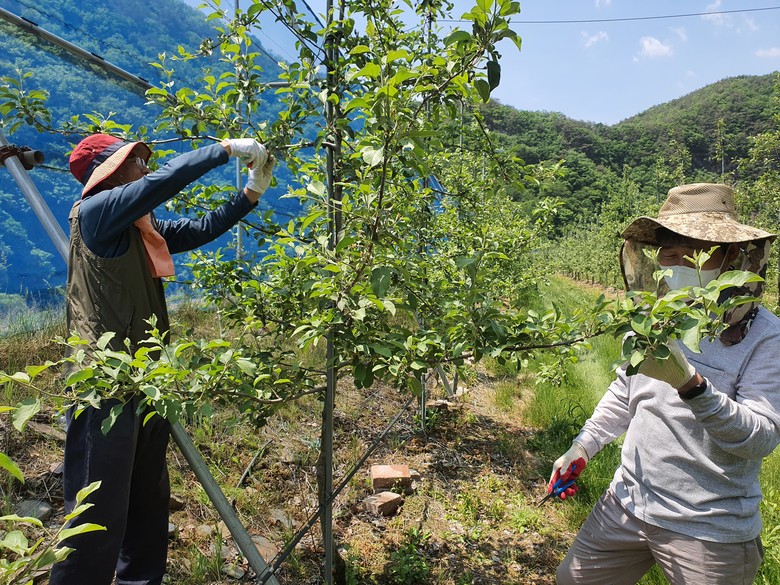 이날 박문희 의장과 의회사무처 직원 80여명은 주말도 반납하고 청주시 상당구 미원면 농가를 방문해 사과접과, 잡초 제거 등에 일손을 보태며 구슬땀을 흘렸다.