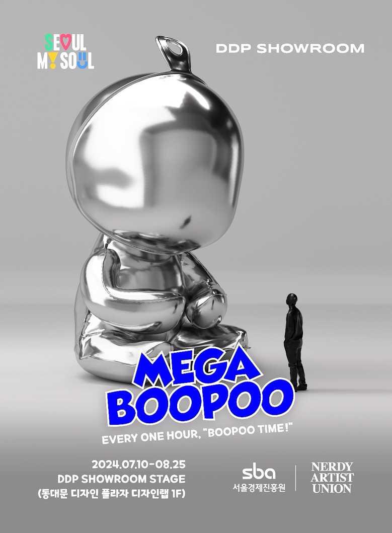 이번 전시 메인 캐릭터인 ‘메가 부푸’는 엔에이유(NAU)와 링거 스튜디오의 협업으로 탄생한 캐릭터로, ‘부풀다’는 의미를 담은 거대한 풍선 캐릭터이다. 상상력과 창의력을 부풀린다는 뜻을 담은 ‘부푸(BOOPOO)’는 패션, 디자인, 예술, 테크 등 여러 콘텐츠와 콜라보가 가능한 하나의 ‘플랫폼 캐릭터’로, 패션의 영감이 피어오르는 공간인 ‘DDP 쇼룸’과의 콜라보를 통해 다양한 가능성을 선보인다.