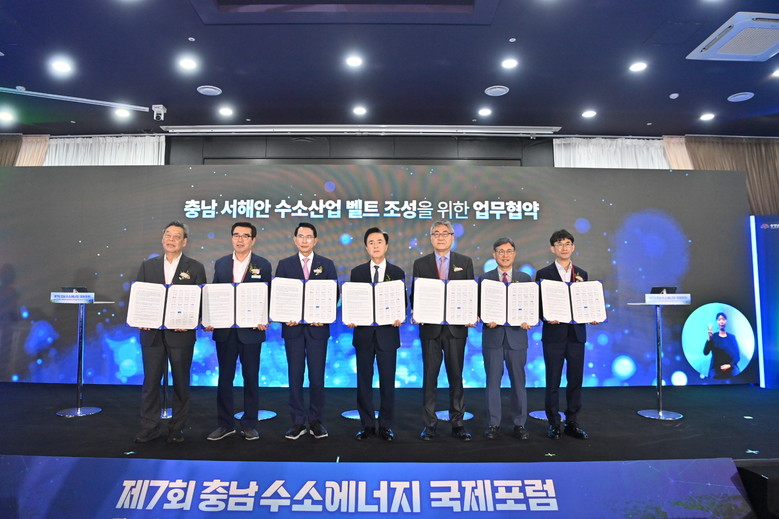 김태흠 지사는 18일 제7회 수소에너지 국제포럼에서 19개 기관·단체·대학·기업과 업무협약을 맺고, 서해안 수소산업 벨트 구축 본격 추진을 안팎에 선언했다.