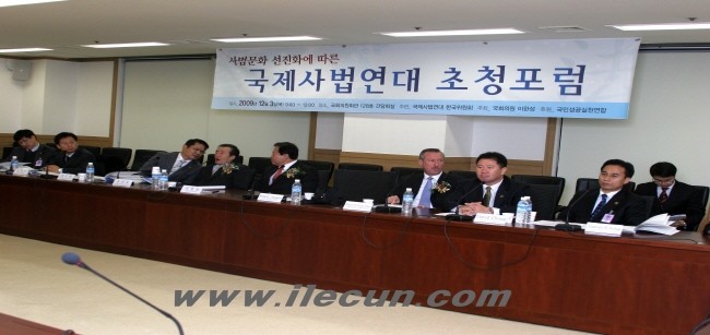 (사진=미국 국제사법연대 Robert Kugler 사무총장 외 임원, 대한민국 국회 초청 국제사법연대 포럼 (총괄기획 국제사법연대 한국위원장 유우종 교수) 국회 유선호 법사위원장, 이한성 국회의원)