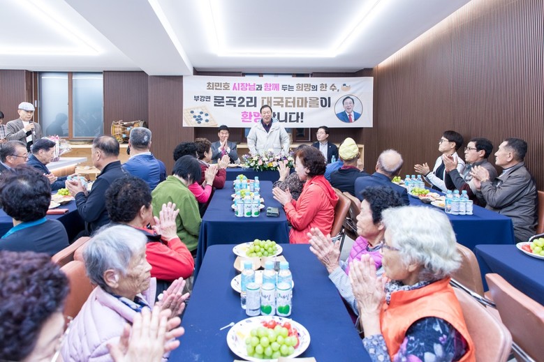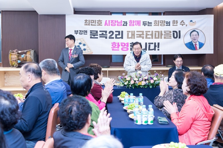 우선 최민호 시장은 24일 부강면 문곡2리 대국터마을 마을쉼터를 방문해 주민 40여 명과 허심탄회한 소통의 시간을 가졌다.