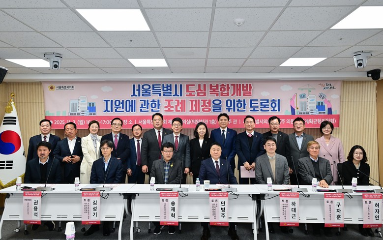 토론회는 지난 2월 시행된 「도심 복합개발 지원에 관한 법률」에 발맞춰 서울시 도심 복합개발 정책의 현황을 점검하고, 이를 실질적으로 뒷받침할 수 있는 조례제정 방향을 모색하는 취지에서 마련됐다. 논의의 핵심 이슈로는 △개발 유형별 기준 설정 △사업면적 제한 완화 여부 △주민 의견수렴 방식이 제시됐다.