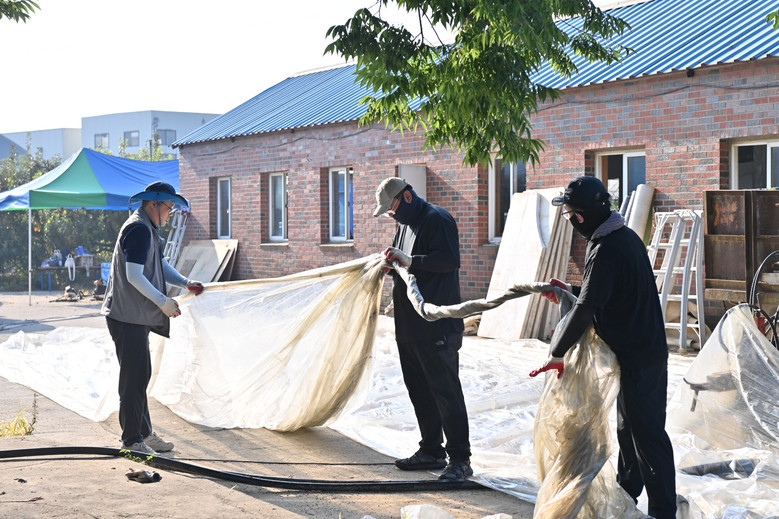 복구활동에는 투자통상정책관 직원들까지 40여 명이 참여해 침수됐다가 물이 빠진 시설하우스 정리를 돕고, 파손된 시설물을 철거했다.