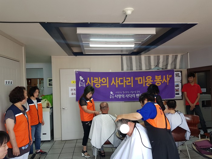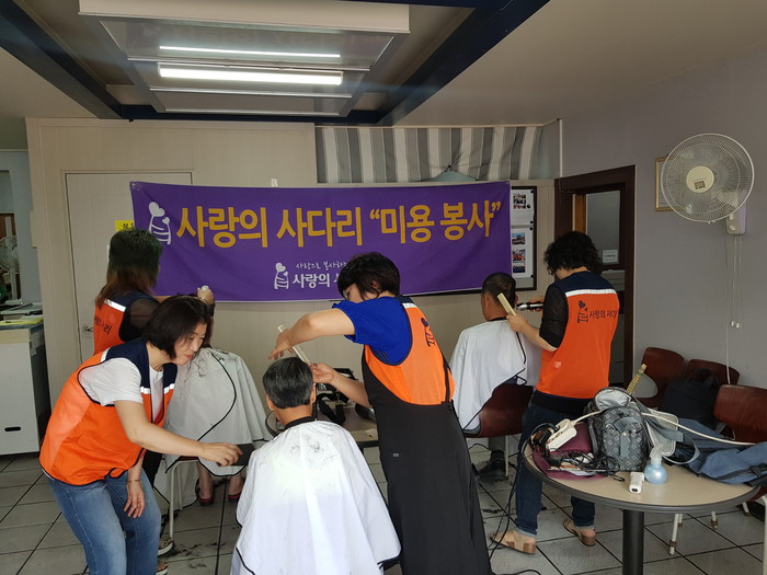 이날 미용봉사에는 송남석 미용봉사단장을 비롯해서 김미경, 김현옥, 이하영, 조선옥, 조은숙 가위천사들이 참석을 하였다.