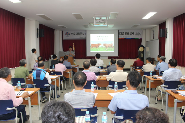이날 교육은 도 축산기술연구소의 유전체 분석사업 참여 및 활용 방안 설명, 축산물품질관리원 대전충남지원의 충남 한우 개량 현황 및 개선 방향 발표, (주)퀀토믹은 CN-한우 유전체 정보 어플 설치 및 실습 등의 순으로 진행했다.