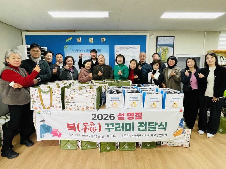 배인수 강천면장은 “바쁜 일정 중에도 꾸러미 제작부터 물품 전달까지 발 벗고 나서주신 협의체 위원님들께 깊은 감사를 드린다”며, “이번 나눔이 어려운 이웃들에게 큰 위로가 되어 모두가 행복한 설 명절을 보내시길 바란다”고 말했다.
