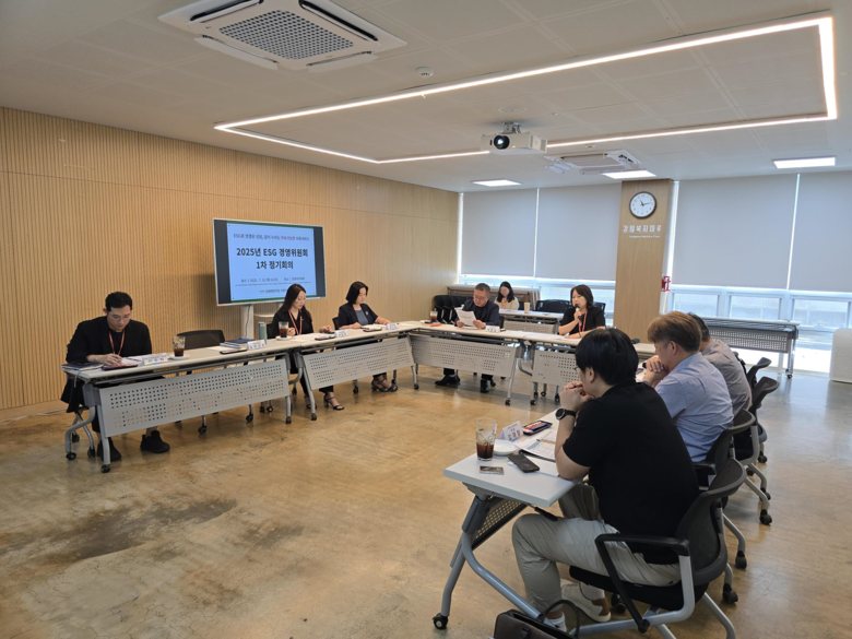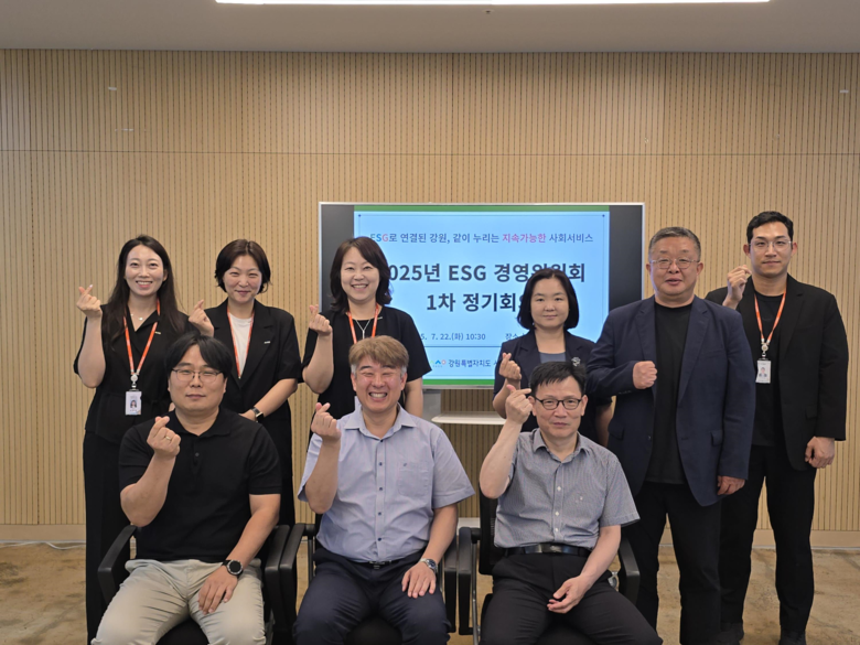 [강원도 세계타임즈=김민석 기자] 강원특별자치도 사회서비스원(원장 이은영, 이하 ‘도 사회서비스원’)은 7월 22일(화) 강원복지마루에서 2025년 환경·사회·지배구조(ESG) 경영위원회 1차 정기회의를 열고, 환경·사회·지배구조(ESG) 경영전략 실천과제 이행 현황 점검 및 성과 확산 방안을 논의했다.