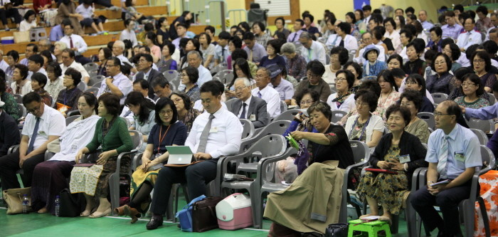 [세계타임즈 이판석 기자] '사랑은 없어지지 않습니다'이 따뜻한 위로가 2019년 여호와의 증인 지역대회를 통해 퍼지고 있는 가운데, 경주지역대회 이틀째날인 17일 오후 청중들이 '없어지지않는 사랑을 가정에서 나타내십시오...남편을 사랑하십시오'라는 심포지엄 연설을 듣고 있다.