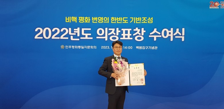 백범김구기념관 컨벤션홀에서 열린 이날 수여식에서 최창호 의회운영위원장은 민주평통 자문위원으로 활동하면서 통일의 의지를 시민들에게 폭넓게 알린 공로를 인정받았다.