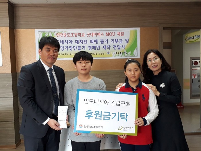 인천송도초등학교에서 전달한 후원금은 굿네이버스 인도네시아를 통해 인도네시아 지진 피해 복구 활동을 위해 사용될 예정이다.